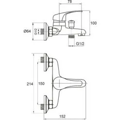 - Montage mural apparent, entraxe 150 mm